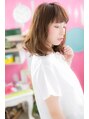 作り込み過ぎないニュアンスカールがラフで優しい雰囲気を実現。厚めバングをオンすることで、ラブでガーリーな印象になりぐんとポップに♪透明感あるツヤカラーで顔周りを明るくすれば、親しみやすい愛されふわミディの完成です。耳かけも似合います。