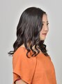 鎖骨下位のボブスタイル、清潔感と優しい雰囲気を引き出せるように耳下からゆる目のウェーブをつけています。