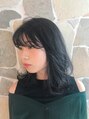 秋冬にむけて、ローレイヤーのミディアムパーマスタイル☆パーマはゆるめにかけ、カラーはほぼ黒髪に近いブルーアッシュです。カラーがダークトーンなので、バングはシースルーにし抜け感を出しました。