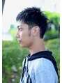 サイド、バックを刈り上げツーブロックにしてトップ全体に動きが出るようにカット