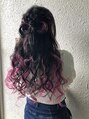 サイドから表編みで網目を見せるように編んで、エクステのカラー部分が活きるように大き目な編込みリボンで仕上げました☆