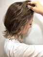 - レイヤーを入れた外ハネロブ。インナーはブリーチしてペールグレージュ。ベースはスモーキーグレージュ。