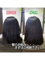 髪質改善。デトックス。水を入れる。栄養を入れる。架橋する。領域を広げる。改善する。順を追って髪を変化させる。継続いただいている方はどんどん髪が変わる。お悩みのなくなった髪の未来は・・・?