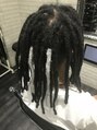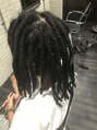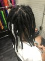 細かくツイストスパイラルパーマをあてて、地毛をドレッドにしました。エクステで希望の長さを出し、ポイントで白のエクステをつけて仕上げました。