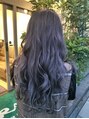 ブリーチでトーンアップした後にシルバーにアメジストをブレンドしたカラーリングをしました。パープルのカラーが個性とキレイな退色を叶えます。普通のアッシュカラーに飽きた方には是非おすすめのカラーリングです(^^)v