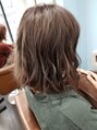 ゆるくカールをつけて!無造作に仕上げたスタイルです。カラーはアッシュベージュで明るい印象に仕上げました。