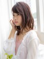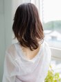 前髪など全体的に重ためな印象なのですが、前髪を片方に流してあげたり、顔まわりの髪の毛を外に流れるようにカットをしたりなどして肌見せの範囲を調節して重たすぎない印象を作っています!!