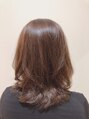 普段髪を縛ることの多いママさんのミディアムヘアースタイルです。1つにまとめることが多いので、前髪をつくることでキュートなイメージにしています。カラーは退色した時の黄色味を抑えるバイオレットが少しはいってます。