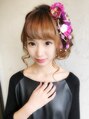 ヘアセット☆とっても可愛いお客様☆サイドゆるふわ大きめに巻きました♪ヘアセットは、なるべく下の方で作って、髪飾りを上の方に☆
