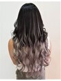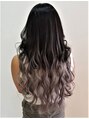 ご来店ありがとうございます(^^♪暗めにカラーしたかみにグレーのシールエクステを80枚付けましたハイライト部分が馴染むので綺麗なハイライトグラデぇーションスタイルに見えます(^^♪