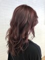 アッシュピンクでツヤ感と透明感を出しています。レイヤースタイルを巻いて軽さを!