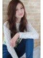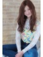 前髪長めのセンター分けのロングスタイルです。毛先が軽くなりすぎない様に重さを残しています。少し上から緩くデジタルパーマをかけます。カラーは春にピッタリなヌーディベージュをオン