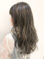 全体にハイライトをいれて、流した後に上からアッシュ系の色味をのせて仕上げてあります。ハイライトは全体に少し太めに入れてありますが、ロングの方で巻いたりする方はハイライトが散ってくれて動きのあるスタイルにしたときにオシャレに見えます!