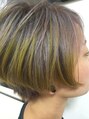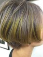 ブリーチベースのハイトーンに全体をラベンダーアッシュにオンカラーした後に、ポイントでイエローのマニキュアをハイライトで入れました!個性を出したい方は是非!!*ヘアマニキュアの使用はご指名のお客様のみとさせて頂いております。