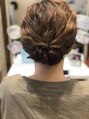 ボブくらいの長さの方でもシニョン風にまとめ上げ編み込みなしでも大人っぽく上品なアレンジです。二次会にもオススメです☆