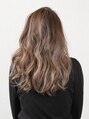 トレンドを取り入れたバレイヤージュ×マロンベージュ。OLAPLEXでカラーのダメージを軽減。