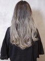 ホワイトグレーのグラデーションカラーです。毛先はブリーチ3回です。