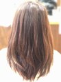 段を入れて軽さを表現し、毛先をブローで内に入れる事で柔らかい動きが出ます。オレンジブラウンでツヤ感を出しました。