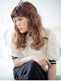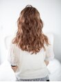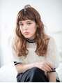 ふわふわお人形のようなウェーブがガーリーなセミロングスタイル。眉上でくるっと巻かれたバングでよりガーリーな印象で目力もアップ!