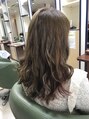 インナーカラーに赤をアクセントとし、アッシュベージュで柔らかさを出してます。32ミリのコテでルーズに巻いてオイルワックスで仕上げてます。