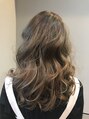 全体に大きめでしっかりとパーマをかけてるからフワフワです。カラーもアッシュブラウンの「くすみカラー」で抜け感が可愛い。