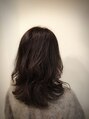 鎖骨下の長さ設定重さをのこしながら、トップは、動きをだすためにレイヤーをいれています。カラーは、秋にむけて少し濃いめのアッシュをいれています。