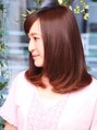徹底したバランスと似合わせと、トータルバランスを重視したデザイン。恋が叶うへアを発信!! カラーリングはブラウンベースにヴァイオレットを合わせたツヤツヤカラー。アイロンで内巻き仕上げ。[藤沢駅]