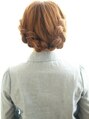 顔周りの毛束を少し残し、左右たし編みしながら耳後ろまで編みピンで固定します。トップに少し逆毛をたてふんわりさせたところでねじってピンで固定します。あとは編み込みながらgo!! [橋本駅]