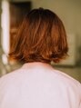 表面に動きが軽く出るようにレイヤーを少し入れて、内側は重めに、外側は軽い印象になるように!!前髪はあえて隙間ができるようにカットをしています。前髪からの肌の透け感を大事にしたスタイルになっています![橋本駅]