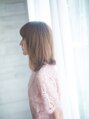 少し明るめのアッシュにヴァイオレットですくんだベージュにツヤ感を表現!鎖骨ラインのロブなのでアレンジも楽に、トップにレイヤーをいれ軽さと動きを出しているので重なくなりすぎない!細い束で外ハネでラフにカジュアルにも、うちにまいて上品にしても◎