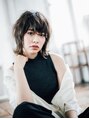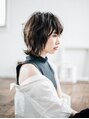 前髪、顔まわりは長めに残して、トップを短くしたウルフスタイルです。外ハネすることで全体のフォルムのバランスをとっています。カラーはダークカラーにハイライトを全体に入れてかっこいい雰囲気に。