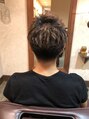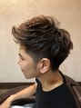 前髪は流さずそのまま上に立ち上げながらセットし、毛束たちをセンターに集めながらワックスを揉み込むと簡単にスタイリングできます。男気あふれるソフモヒスタイルです!