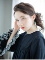 ミディアムヘアの大人アレンジスタイルになります。きっちりしすぎず、こなれ感をだしてオシャレな印象に!
