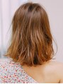 フルバングのボブのスタイルなのに重たい印象にならないのは、前髪の透け感とアッシュベージュ系カラーが◎これからの時期に髪を下ろしても重たくならないですし、結んだりアレンジもできる長さなのでとてもオススメな大人ボブスタイルです。