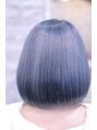 グレイヘアーにブリーチをしWカラーでサファイヤブルーに綺麗に染めたヘアーは艶はもちろんグレイヘアーに見せないお洒落ヘアカラーに仕上げています