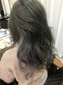 赤味を抑えたブルージュカラーで根元から毛先にかけてグラデーションカラーしました!シングルプロセスで、なるべく明暗出るように根元はかなり濃いブルー系で染めてます!メリハリのあるスタイルですね!