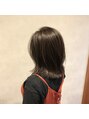 しっかりとアッシュ感があって、しっかり透明感のあるカーキグレージュです。淡さのなかに深みもあるのでツヤ感も楽しめます。自然に毛先が外ハネになるセミディはそのままで十分可愛いです。