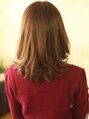 毛先はふっくらに内巻きに。ストンとしないゆとりのあるナチュラルスタイルです。前髪は、ふっくらになるようにカールをつけてゆるく可愛く。20ミリのロッドで、前髪にパーマかけたので朝がらくちんです。[橋本駅]