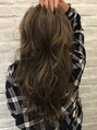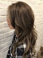 明るめのベースをそのままにほんのりカーキ系のカラーをチョイス!細めのハイライトで立体感も演出してます!