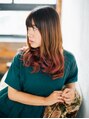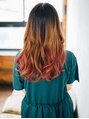 Aラインシルエットの重めロングスタイルです。毛先にかけてグラデーションカラー、ピンクがアクセントになって可愛らしい雰囲気です。顔まわりのサイドバングをアゴラインに作っています。チャレンジしやすいアクセントカラーです。