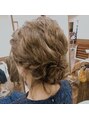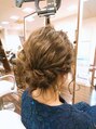 **ボブアレンジ**肩につく位の長さのボブアレンジです。後れ毛を残してルーズスタイルにしました。