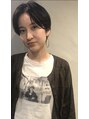 センターパートのショートスタイル。雰囲気が出やすく扱いやすいスタイル。ダークトーンも大人っぽく。