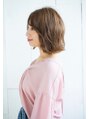 無造作なカールの効いたボブスタイル。フィニッシングにオイルスタイリングでガーリーに