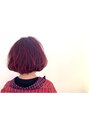 シンプルでナチュラルなワンレンボブにオン眉で可愛さを強調♪鮮やかなレッドヘアーでワンランク上のお洒落さんに\(^0^)/★