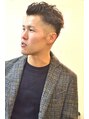 ツーブロックのアシンメトリーで、かなり遊び心満載のスタイルです。前髪をあげてもよし、下ろしてもよしの自由です。髪型の縛りが少ない学生さんにおススメかもしれません!