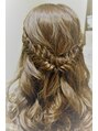 ロングの方におすすめのハーフアップのアレンジです☆フィッシュボーンで細かく編み込んだものを崩して仕上げました。巻きおろしをまとめてフルアップにもできますのでご相談ください♪