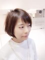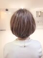 ボブの持つ愛らしさをたっぷり引き出しました。リップラインのベースで、丸みが出るようにカット。重く見えても全体をしっかり間引いて柔らかさをだし、丸みとふわっと感の相乗効果で大人可愛い雰囲気に。