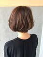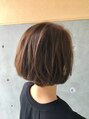 前下がりショートボブ。重軽なスタイルがポイントです♪カラーは、ハイライトとローライトを施し立体感を出します。上から全体的にマットブラウンカラーを施し、ちょっぴり都会的な大人ヘアに。