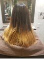 ブリーチをダメージ最小限に抑えてグラデーションで入れたあとに、カーキグレージュのカラーリングをしました。赤みを消しながら深みも表現しています。