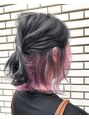 ダークグレージュ&インナーユニコーンカラーです。ピンク&パープル&ブルーの3色です。インナーカラーは少し派手位がちょうどイイです(^^)